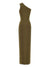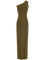 moss green silk one-shoulder sleeveless long length straight hem tubino, m.spalla One-shoulder silk long dress Size and Fit - This piece fits true to size. We recommend you get your regular size. Model is 1,75m / 5ft 8in wearing size S