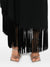 black crepe texture fringe detailing asymmetric neck single long sleeve asymmetric hem mid-length monospalla, frange Arno fringed long dress Size and Fit - This piece fits true to size. We recommend you get your regular size. Model is 1,75m / 5ft 8in wearing size 40 (IT)