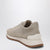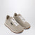 Brunello Cucinelli sneakers in gray-green suede, characterized by lace-up closure, logo patch tongue, almond-shaped toe, side jewelry detail, and rubber runner sole.