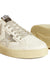white/silver-tone leather smooth grain laminated finish panelled design distressed effect front lace-up fastening contrasting branded heel counter glitter detailing perforated detailing signature star patch to the sides logo patch at the tongue perforated toebox round toe branded insole contrasting rubber...