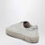 Sneakers by Golden Goose Deluxe Brand in white leather with star patch detail and silver lettering logo heel tab, featuring vintage-effect finish, lace-up closure, and thick rubber sole
