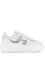 white leather metallic finish front lace-up fastening logo-print tongue branded insole round toe flatform sole h stripes H-Stripes leather sneakers Size and Fit - Heel 2,2 in / 5,5 cm, Platform 1,6 in / 4 cm