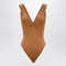 Brown silk-blend bodysuit by Saint Laurent, features wide ruched straps crossed at the back and a deep V-neckline. Size and Fit - Model wears size 36 FR Model measurements: Height: 180 cm Chest: 85 cm Waist: 66 cm Hips: 89 cm