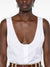 white cotton poplin texture U-neck sleeveless straight hem front button placket We've partnered with Good On You — an independent agency that rates how brands perform in relation to their impact on the planet, people and animals, with a multi-criteria...