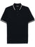 navy blue front button placket short sleeves embroidered logo stripe detailing m/c Logo cotton polo shirt Size and Fit - This piece fits true to size. We recommend you get your regular size. Model is 1,84m / 6ft 1in wearing size M