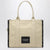 Large canvas handbag by Marc Jacobs in sand colour, featuring two top handles, zip closure, internal pockets, contrasting front logo lettering, and logo patch on the back. Size and Fit - Width 42 cm x Height 34 cm x Depth 16 cm Handle drop: 24 cm