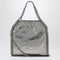 Mini tote bag by Stella McCartney made of grey vegan Shaggy Deer fabric with a metallic effect, featuring a double handle and chain shoulder strap, a magnetic button fastening, a main compartment, an internal zipped pocket and an engraved logo medallion charm. Size and Fit - Width 26,5 cm x Height 23,5 cm x Depth 10 cm Shoulder strap length 105 cm Handle drop: 12 cm