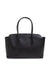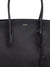 black smooth finish dual top handles elongated shape internal slip pocket logo plaque large Large leather shopping bag Size and Fit - DEPTH 15 cm. HEIGHT 28 cm. WIDTH 49 cm.