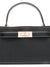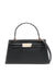black open top single top handle adjustable detachable shoulder strap internal card slots small Lee Radziwill small leather handbag Size and Fit - DEPTH: 6.0 Centimetres. HANDLE: 9.0 Centimetres. HEIGHT: 12.0 Centimetres. WIDTH: 24.0 Centimetres.