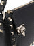 black calf leather grained texture gold-tone Rockstud embellishment single top handle detachable shoulder strap logo print to the front main compartment internal card slot internal logo patch full lining top zip fastening hook fastening small Rockstud small leather shoulder bag Size and Fit - Width 7,48 in / 19 cmHeight 5,12 in / 13 cmDepth 2,76 in / 7 cmHandle 7,87 in / 20 cmStrap 39,37 in / 100 cm