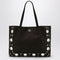 Borsa shopping medium size by Valentino Garavani in dark brown suede, edged with metal sphere studs with palladium finish, two handles, Vlogo Signature detail in metal and removable internal pouch with zip. Size and Fit - Width 40 cm x Height 30 cm x Depth 13 cm Handle drop: 24 cm