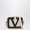 Butter lambskin shoulder bag by Valentino Garavani, featuring a contrasting black maxi VLogo Signature on the front, antique gold metal hardware, zip closure, a flat back pocket with zip, internal card slots, a removable chain shoulder strap, and a removable and adjustable leather shoulder strap. Size and Fit - Width 23 cm x Height 16 cm x Depth 6 cm Adjustable shoulder strap length min 80 cm - max 100 cm Shoulder strap lenght 120 cm