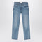 Ami Paris jeans in light blue cotton denim with a faded effect, characterized by a front closure with zip and button, belt loops, five classic pockets, and a back logo patch. Size and Fit - Model wears size 32 Model measurements: Height: 189 cm Chest: 104 cm Waist: 78 cm Hips: 95 cm
