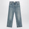 Wide jeans by Ami Paris in blue cotton denim with a faded effect, featuring a front zip and button closure, belt loops, five classic pockets, and a back logo patch. Size and Fit - Model wears size 32 Model measurements:...
