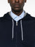 Cobalt blue/grey cotton blend jersey texture drawstring hood long sleeves two front pouch pockets ribbed cuffs and hem front two-way zip fastening. +zip Cotton blend zipped hoodie Size and Fit - This piece fits true to size. We recommend you get your regular size. Model is 1,84m / 6ft 1in wearing size M
