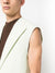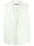V-neck single-breasted vest from JIL SANDER featuring green tea, tailored design, raw-cut edge, V-neck, wide notch lapels, open front, sleeveless, two chest welt pockets and straight hem. Single-breasted vest