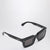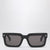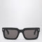 Off-White black acetate sunglasses, featuring a square frame, green clip lenses, quotation marks on the front, and an Arrow logo plaque on the temples.