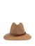 beige centre-dent crown faux-leather band curved narrow brim gold-tone logo plaque fedora Straw fedora hat