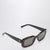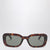 Saint Laurent sunglasses with brown tortoiseshell acetate frame, characterized by rectangular shape, Cassandre metal logo on the temples, and black lenses with 100% UVA/UVB protection.