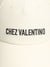 ivory white cotton canvas bowl crown five-panel construction 'Chez Valentino' embroidery eyelet vents curved peak adjustable strap to the rear logo ricamato Chez Valentino baseball cap