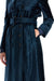 Crafted in soft flame velvet with a satin finish, this Tom Ford maxi coat draws inspiration from the design of a trench coat with features such as front and back storm flaps and epaulettes on the shoulders. It stands out for its elegant straight silhouette cinched at the waist by a matching leather belt with buckle. The double-breasted style has twelve horn buttons and a convertible collar, along with flap pockets secured by buttons. Lined with twill and padded shoulders. Model is