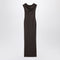 Long sleeveless dress by Max Mara Pianoforte in brown viscose and lurex yarn, characterized by a V-neckline at the back with crossed straps, fitted silhouette, straight skirt, and unlined design. Size and Fit - Model wears size S Model measurements: Height: 179 cm Chest: 82 cm Waist: 65 cm Hips: 90 cm