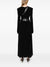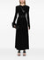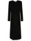 black stretch-jersey V-neck flared hem concealed rear zip fastening draped design shoulder pads long sleeves thumb slots detachable and adjustable waist belt fitted waistline unlined mid-calf length flaed scollo v V neck flared dress