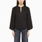 Black cotton poplin blouse by By Malene Birger featuring bell sleeves, a flared hem and a V-neckline. Size and Fit - Model wears size 34 DK Model measurements: Height: 179 cm Chest: 82 cm Waist: 65 cm Hips: 90 cm