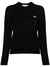 black wool knitted construction fine knit seam detailing crew neck long sleeves ribbed cuffs and hem embroidered Baby Fox patch at the chest straight hem. baby fox head Baby Fox wool jumper Size and Fit - This piece fits true...
