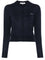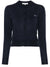 navy blue wool fine knit tonal stitching embroidered logo at the chest round neck long sleeves ribbed cuffs and hem front button fastening gcollo, corto Baby Fox wool cardigan Size and Fit - This piece fits true to size. We recommend you get your regular size. Model is 1,75m / 5ft 8in wearing size S