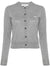 grey wool fine knit tonal stitching embroidered logo at the chest round neck long sleeves ribbed cuffs and hem front button fastening. gcollo, corto Baby Fox wool cardigan Size and Fit - This piece fits true to size. We recommend you get your regular size. Model is 1,75m / 5ft 8in wearing size S
