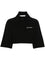 black cotton piqué weave polo collar short sleeves embroidered logo at the chest cropped straight hem front button placket monogram pleated Logo cropped polo shirt Size and Fit - This piece fits true to size. We recommend you get your regular size. Model is 1,75m / 5ft 8in wearing size S