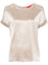 pale gold-tone silk blend satin finish round neck single rear button fastening short sleeves turn-up cuffs short side slits high-low hem over Silk blouse Size and Fit - This piece fits true to size. We recommend you get your regular size. Model is 1,75m / 5ft 8in wearing size 40 (IT)