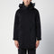 Black nylon and polyester microfibre long parka by C.P. Company, featuring a removable down lining, concealed zip and button fastening, two patch pockets with flap and button on the side, long sleeves with adjustable cuffs, hood with drawstring and logoed...