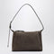 Brunello Cucinelli brown suede bag, characterized by an adjustable buckle shoulder strap and a jewelry loop, zip closure, an internal pocket for cards, and embossed logo lettering on the front. Size and Fit - Width 31 cm x Height 15 cm x Depth 4,5 cm Handle drop: 20 cm
