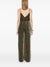 moss green velvet palazzo design concealed side zip fastening V-neck adjustable spaghetti straps sleeveless belted waist two side inset pockets wide leg lunga, spalline Velvet jumpsuit Size and Fit - This piece fits true to size. We recommend you get your regular size. Model is 1,75m / 5ft 8in wearing size S