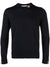 jersey stitch crew neck jumper from THOM BROWNE featuring navy blue, virgin wool blend, fine knit, ribbed-knit edge, RWB stripe, crew neck, long sleeves and straight hem. rwb ricamato collo Wool crewneck jumper Size and Fit - This piece fits...