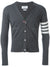 4-Bar cashmere cardigan from THOM BROWNE featuring medium grey, cashmere, knitted construction, ribbed trim, signature 4-Bar stripe, grosgrain ribbon trim, V-neck, two front patch pockets, long sleeves, front button fastening and straight hem. 4bar manica 4Bar cashmere cardigan Size and...