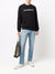 black/white modal-cotton blend jersey fleece logo print to the front crew neck long sleeves straight hem logo grande scritta Cotton blend crewneck sweatshirt