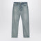 Fear of God jeans in light blue washed cotton denim, featuring a front zip and button closure, belt loops, five classic pockets, front zip and button closure, rubber logo patch on the front, and raw hem. Size and Fit - Model wears size 32 Model measurements: Height: 187 cm Chest: 102 cm Waist: 76 cm Hips: 92 cm
