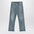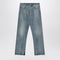 Maison Margiela jeans in blue cotton denim with a faded effect, characterized by a front zip closure and hook, belt loops, five classic pockets, raw hem with rips and slits on the side, and a back detail with a buckle....