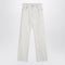 MM6 Maison Margiela jeans in white cotton denim, featuring a front zip and button closure, belt loops, five classic pockets, contrasting stitching, two tone-on-tone patches on the leg, a numeric label on the back pocket, and a line of white...