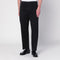 Thom Browne black cotton trousers, characterized by belt loops, front zip closure, button and hook, two side welt pockets, two welt pockets with button on the back and a tricolour detail on the back. Size and Fit - Model wears size 4 Model measurements: Height: 185 cm Chest: 105 cm Waist: 85 cm Hips: 100 cm