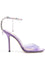 Saeda 115mm sandals from JIMMY CHOO featuring purple, translucent design, crystal-embellished ankle strap, branded leather insole, open toe and high stiletto heel. Size and Fit - Heel 4,5 in / 11,5 cm; Platform 0,4 in / 1 cm