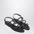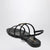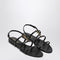 Saint Laurent low sandals in black leather, featuring a thin strap upper, front metal Cassandra logo with gold finish, side buckle closure, logo printed insole, and leather sole.