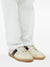 ecru/black distressed finish front lace-up fastening signature single-stitch logo contrasting branded heel counter side stripe detailing round toe contrasting rubber sole replica Replica leather sneakers Size and Fit - Heel 1,2 in / 3 cm, Platform 0,6 in / 1,5 cm