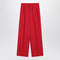 Ami Paris red virgin wool pants, characterized by a front zip closure with a hook, two side welt pockets, two back welt pockets with a button, pleats at the front, and a high waist with an adjustable button detail. Size...